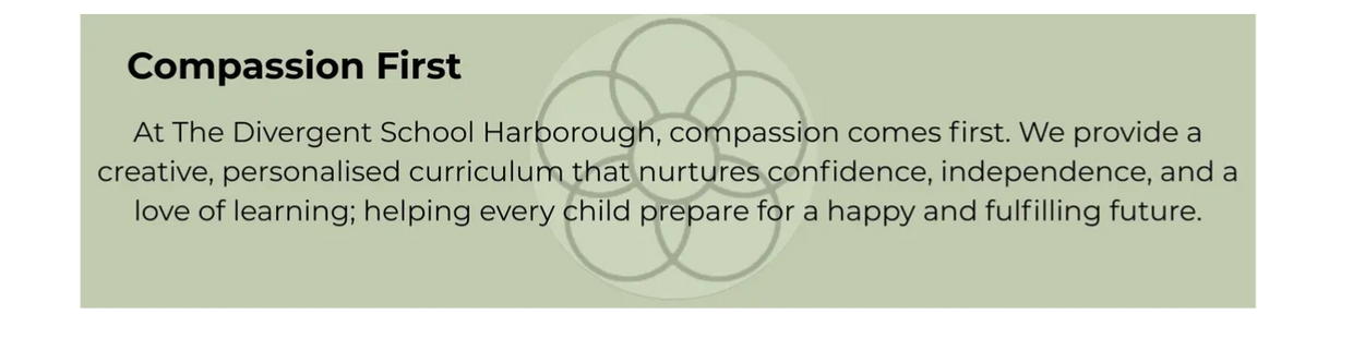 At The Divergent School Harborough, our goal is simple: to put compassion first, nurture every learner, and prepare them for a positive, fulfilling future.